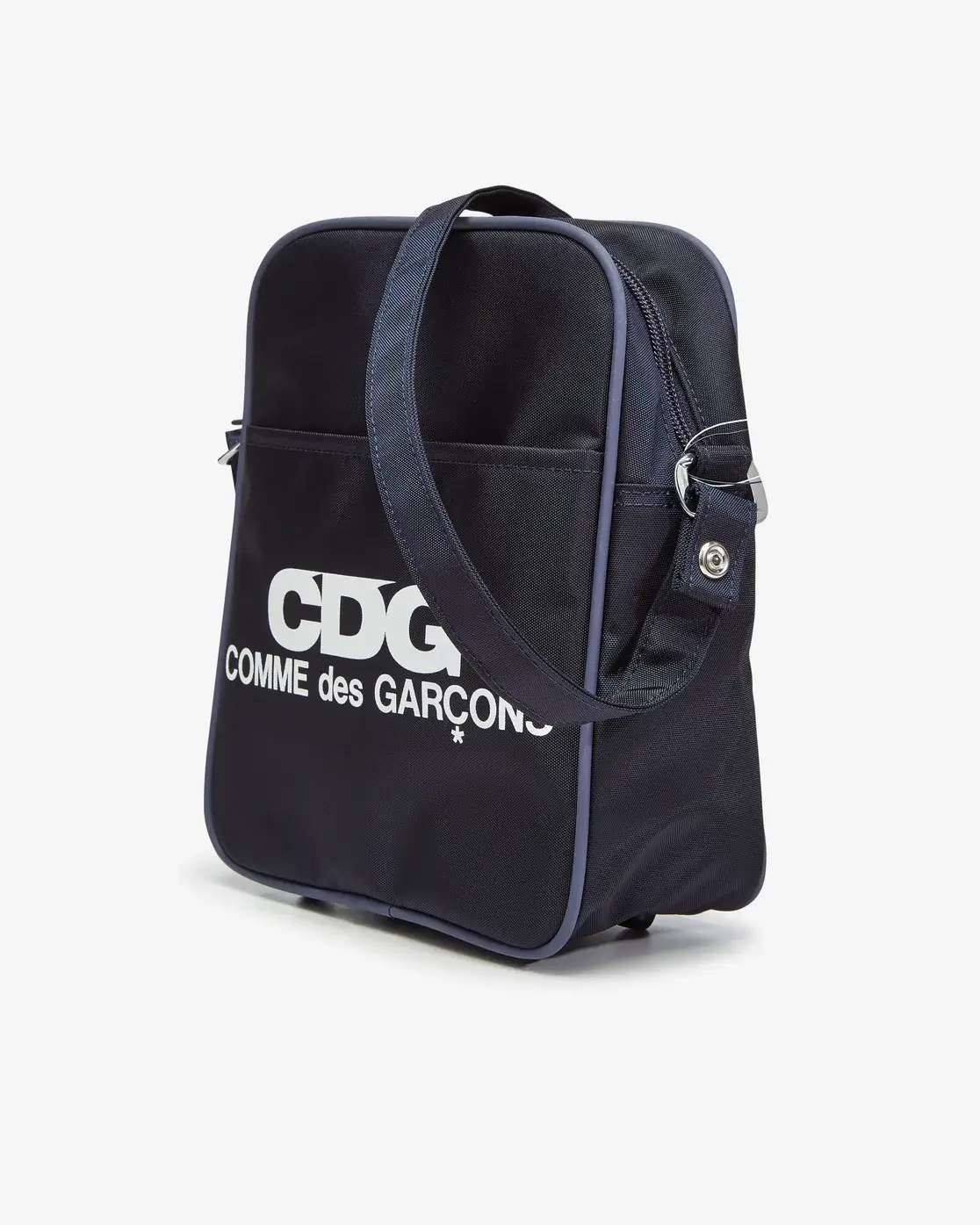 Designed for everyday wear, the CDG Logo Shoulder Bag Navy offers just the right amount of space for your essentials—wallet, phone, and small accessories—while maintaining a streamlined silhouette. The adjustable shoulder strap allows for comfortable crossbody or over-the-shoulder styling, making it a perfect piece for both men and women.