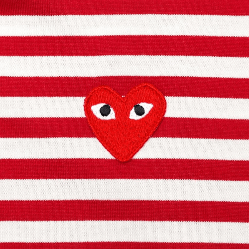 CDG PLAY Big Red Heart Striped L/S T-Shirt (White/Red)