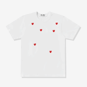The Comme des Garcons Play Polka Dot With Upside Down Heart T-shirt is more than just apparel—it’s a statement piece that reflects individuality and artistic expression. Designed for fashion-forward individuals who value comfort as much as aesthetics. This T-shirt combines minimalism with distinctive details, making it a must-have addition to any wardrobe.