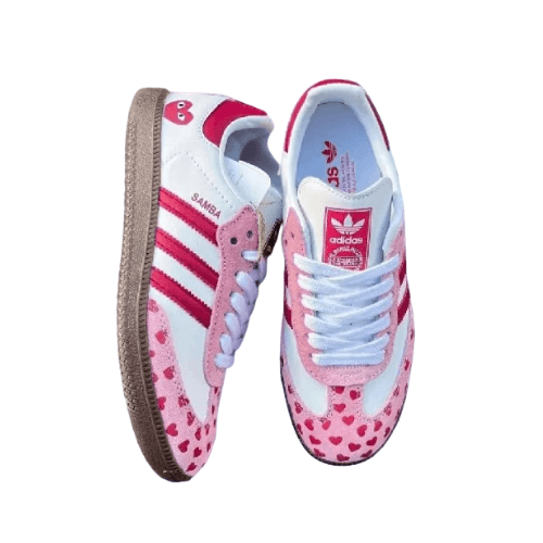 Step into a unique blend of high fashion and streetwear with the Comme des Garçons x Adidas Samba Sneakers Strawberry. This limited-edition sneaker combines the timeless design of the iconic Adidas Samba with the avant-garde touch of Comme des Garçons, making it a must-have for sneaker enthusiasts and style-conscious individuals alike. Crafted from premium leather with soft suede overlays, the pair brings together durability and sophistication, while the strawberry-inspired tones add a refreshing twist to the classic silhouette.